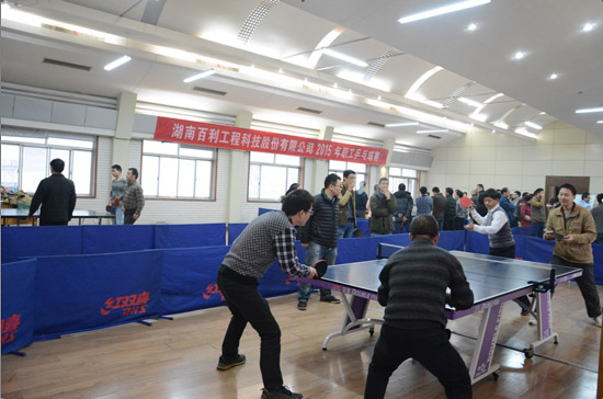 為豐富職工文化生活,由公司工會主辦,土建室分會承辦的“湖南百利工程科技股份有限公司2015年職工乒乓球賽”于12月16日至24日在兵乓球活動中心舉行。
