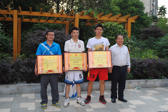 下圖為公司總裁肖立明(右一)為獲獎代表隊頒獎留影